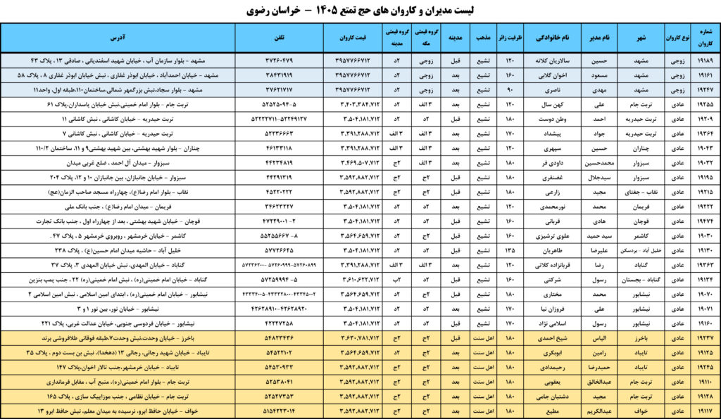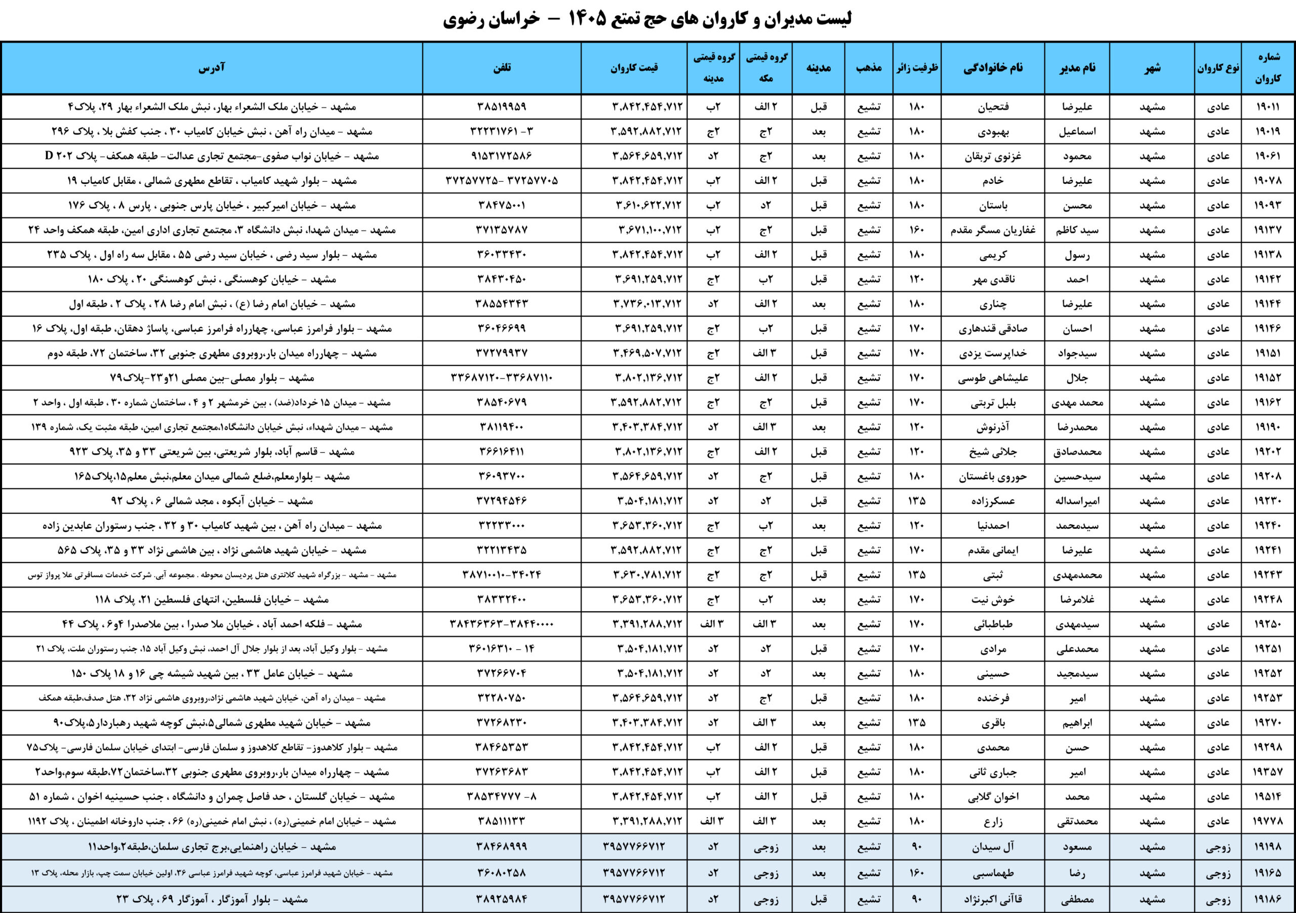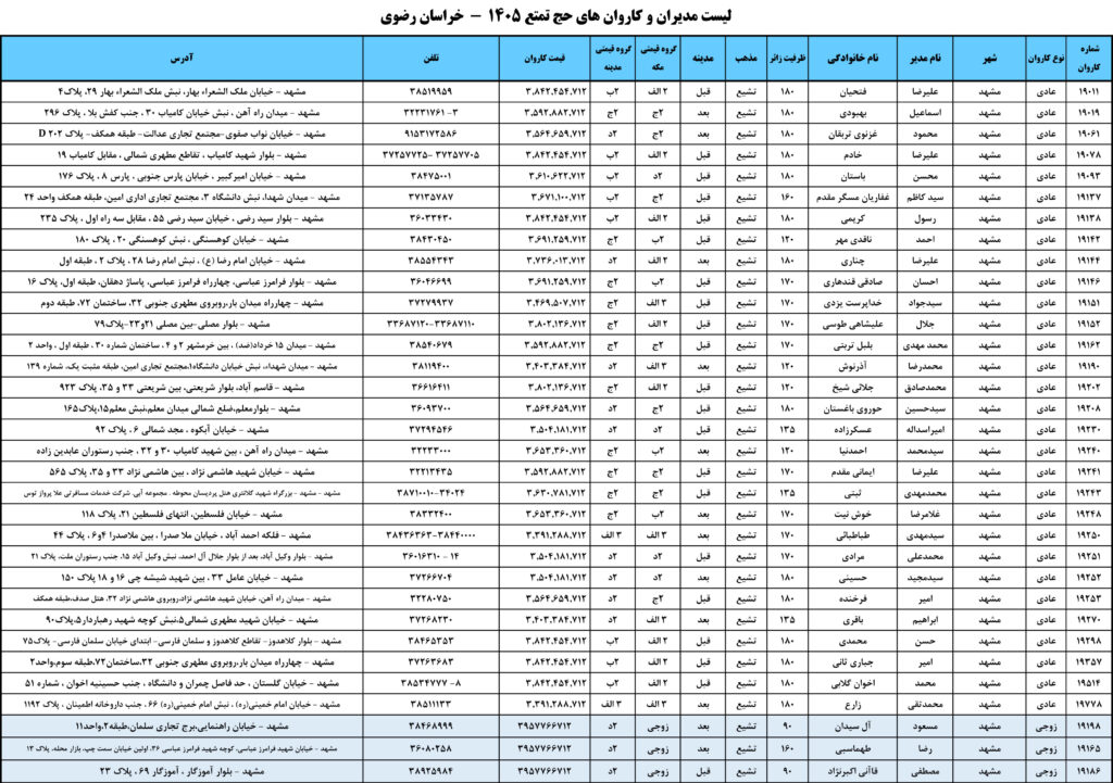 لیست مدیران حج تمتع۱۴۰۵ استان خراسان رضوی